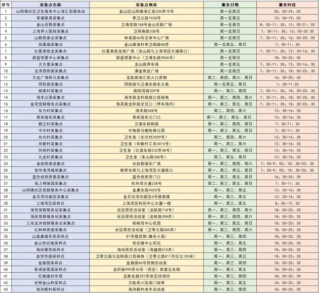 山阳镇常态化便民核酸采样点安排表(6月26日起执行)