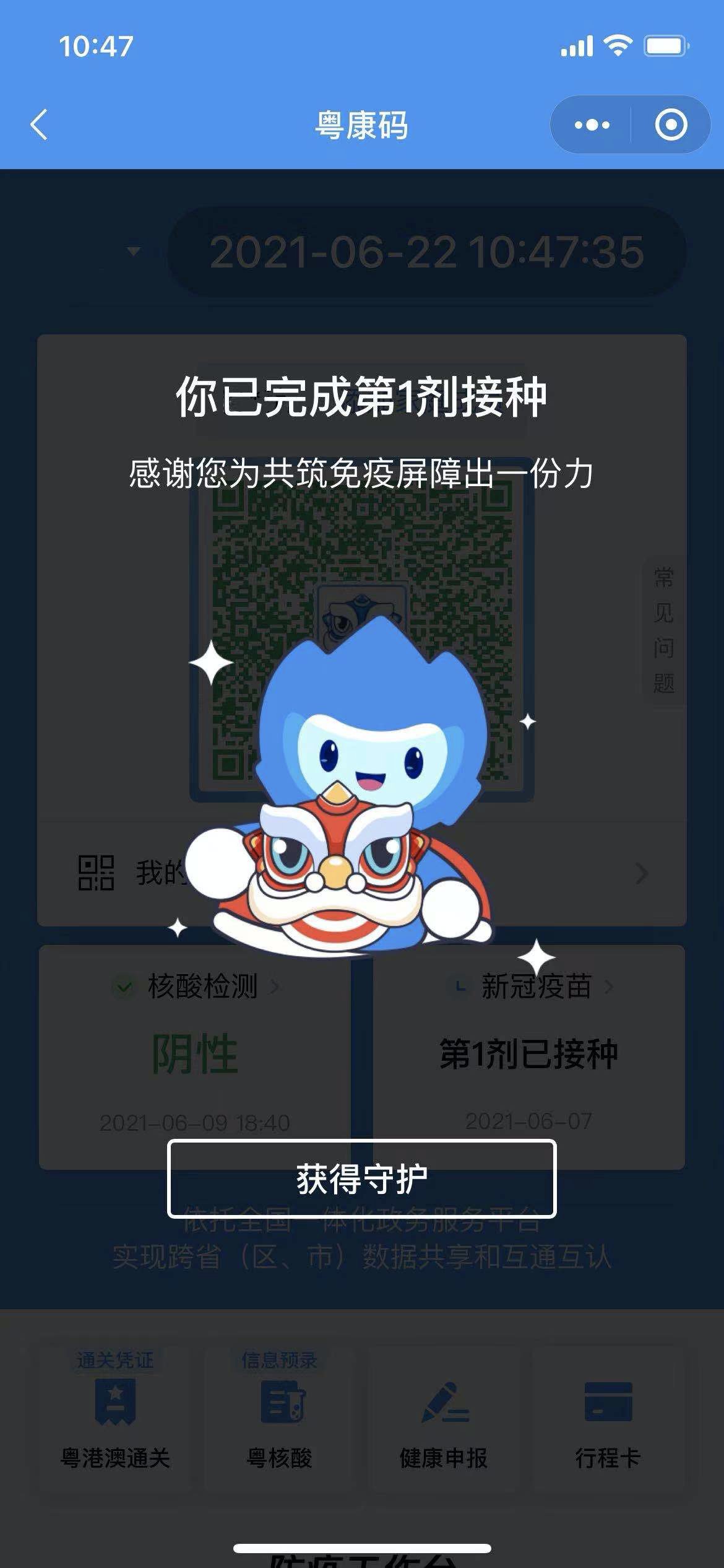 接种了新冠疫苗,粤康码没有显示?