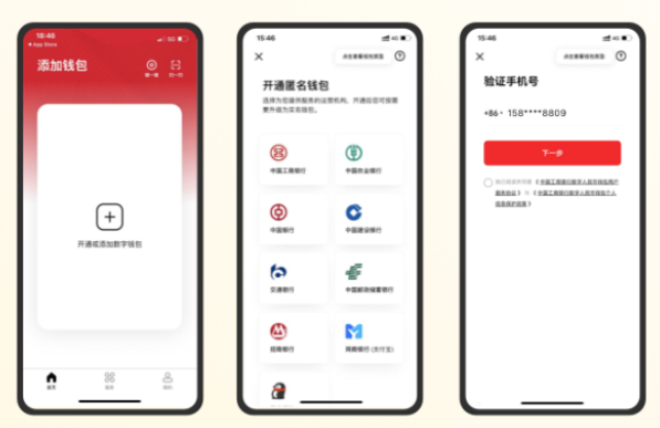 中签用户下载并打开数字人民币APP,点击页面“+”,选择登记报名时所填写的运营机构,设置联系方式、输入验证码,设置钱包支付密码、钱包名称,即可开通数字人民币钱包。
