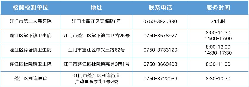 蓬江区近日为“两类人群”开通免费核酸检测专用通道。