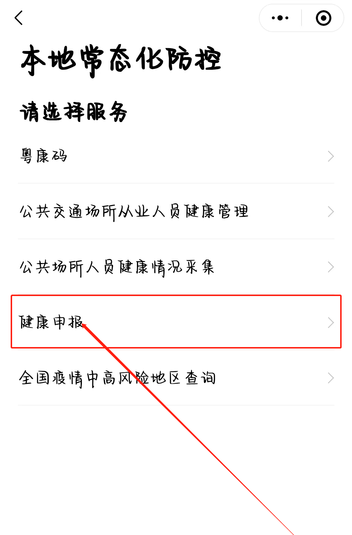 找到需要申报的板块进行个人健康申报。