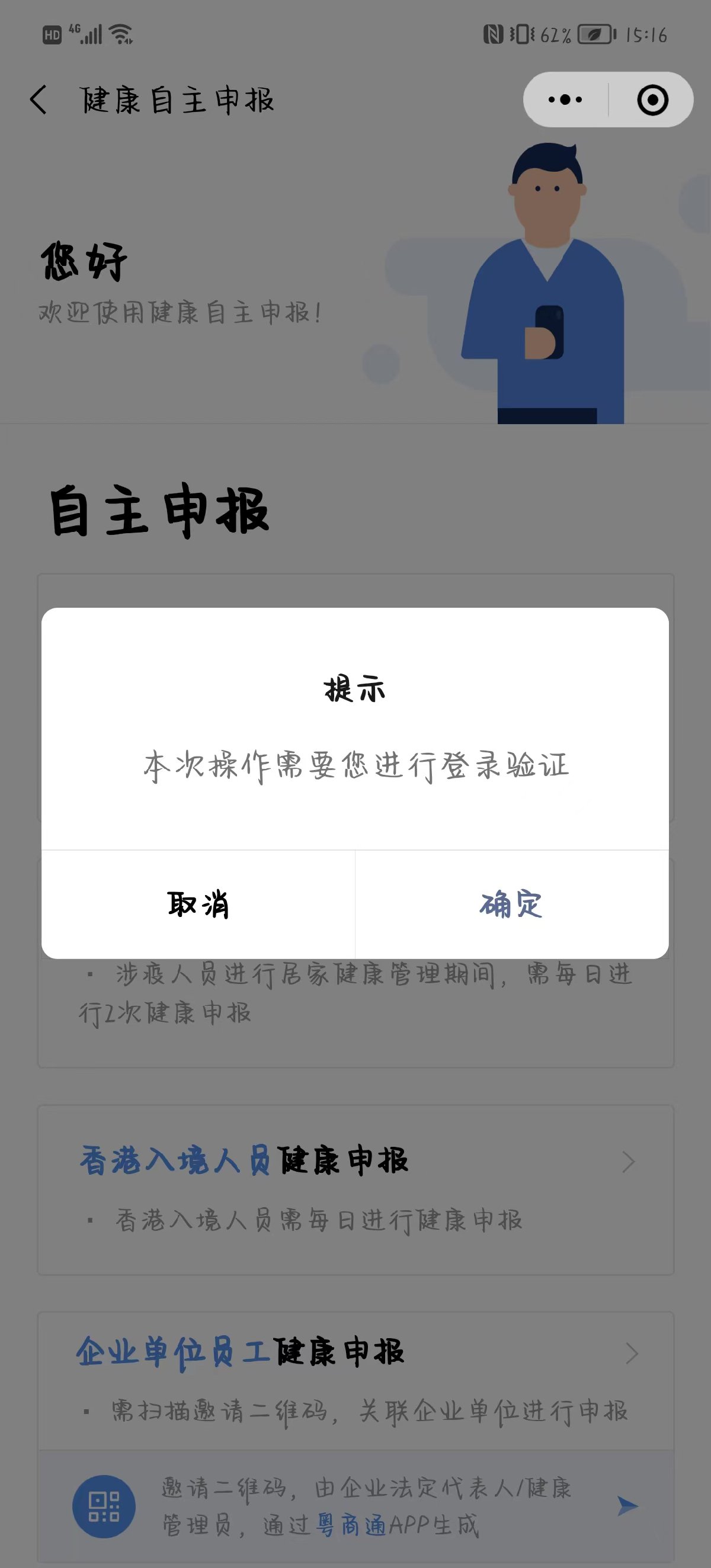 选择“健康申报”,进行登陆验证;