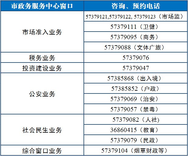 市民在“网上办、掌上办”过程中如遇到问题,或确有需要到窗口办理的紧急事项,可拨打以下咨询电话,各窗口值班工作人员将为您进行业务办理咨询、预约和指导。