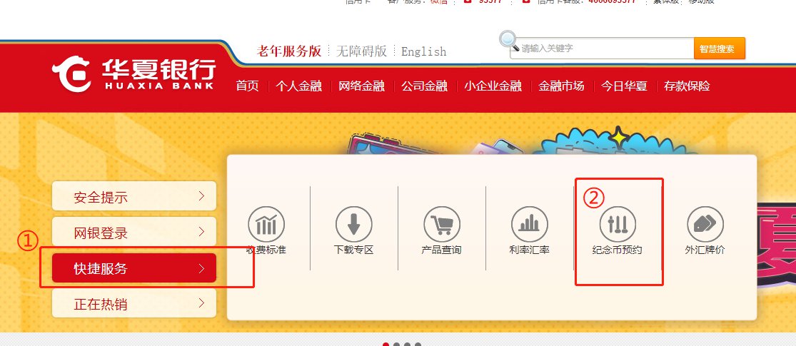 1.官方网站:访问www.hxb.com.cn,选择“快捷服务”——“纪念币预约”菜单。