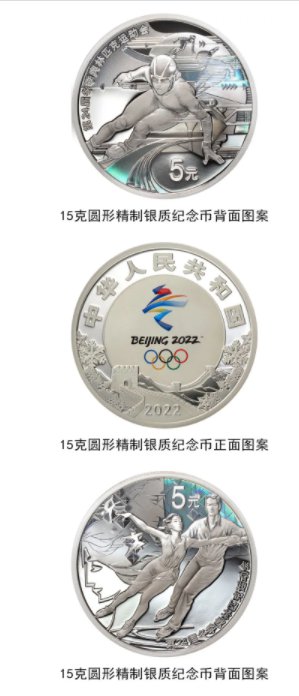该套纪念币正面图案均为第24届冬季奥林匹克运动会会徽,衬以长城、雪花等组合设计,并刊国名、年号。