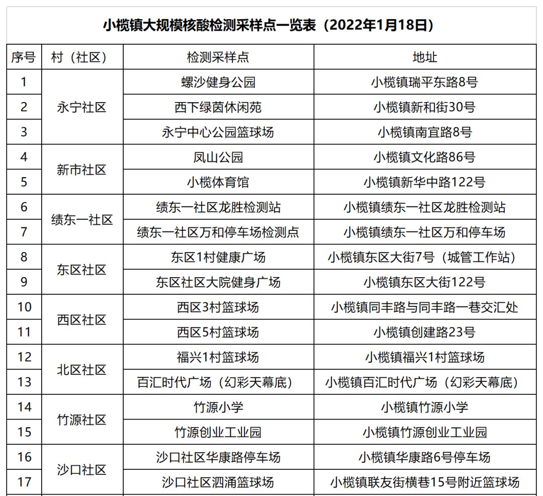 小榄镇关于1月18日开展新一轮大规模核酸检测的通告