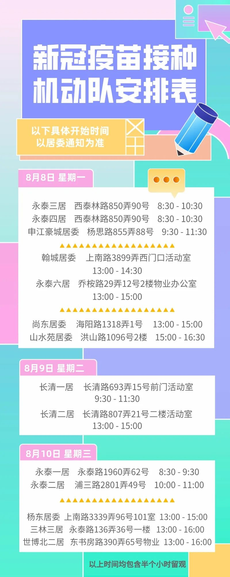 三林镇新冠疫苗固定接种点安排
