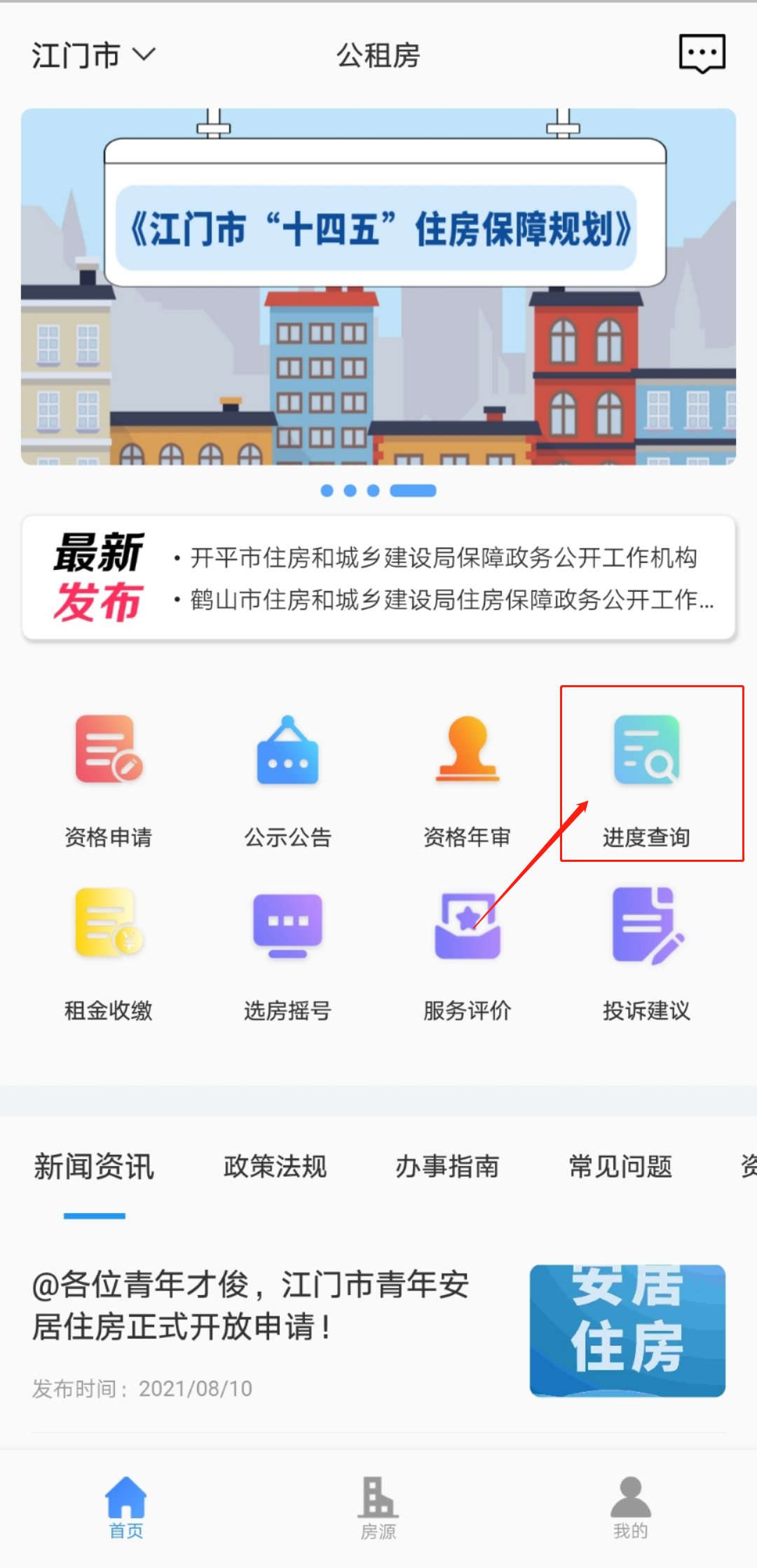 答:江门市作为全国公租房APP(掌上公租)推广应用19个试点城市之一,已正式上线公租房APP(掌上公租)。此公租房APP具有进度查询功能。