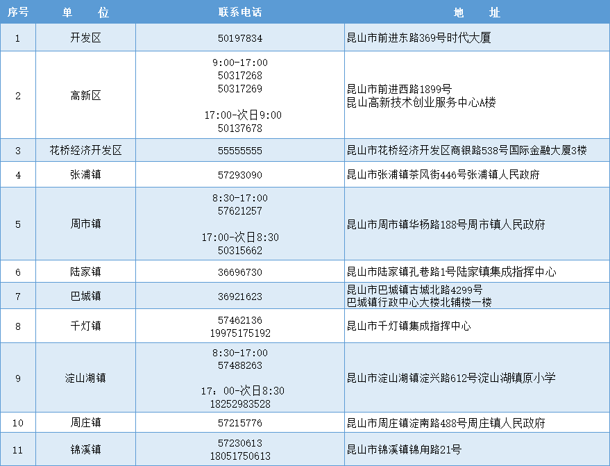 昆山市新冠肺炎疫情防控指挥体系联系方式一览表