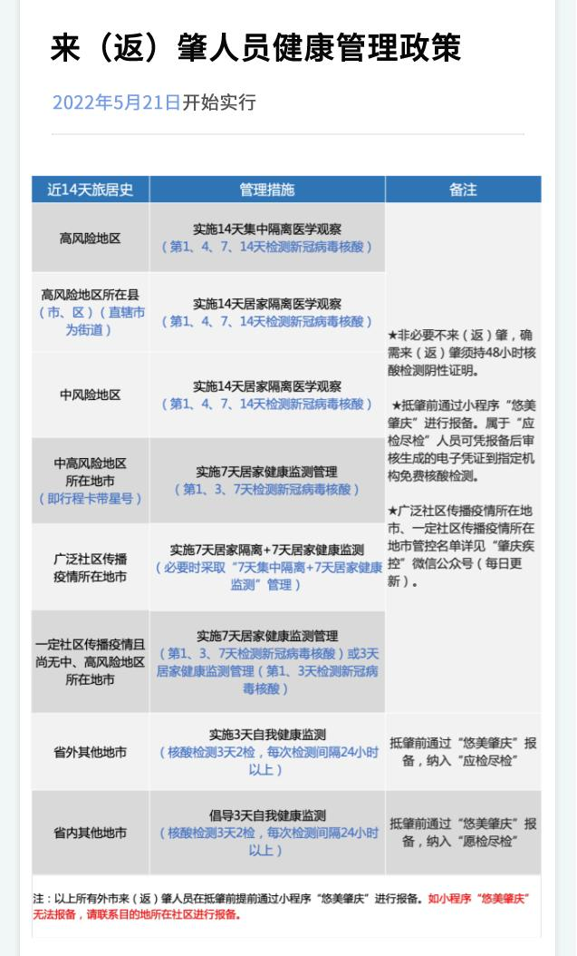 2022年肇庆疫情防控政策
