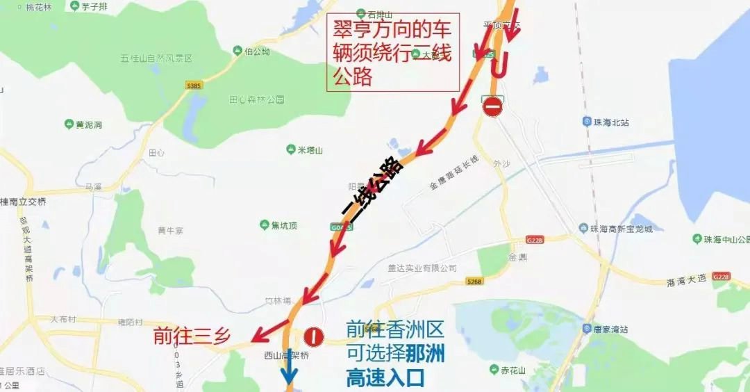 珠海高新区临时交通管制期间外地入珠车辆绕行路线