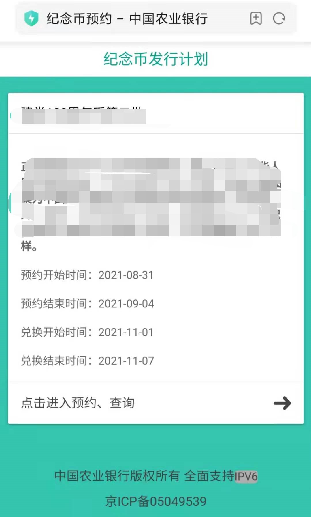 1.手机银行:首页广告图或搜索“纪念币预约”进入