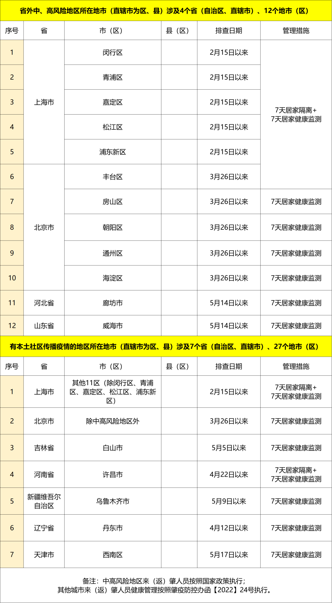 假期间有中、高风险地区所在县(市、区)或与阳性感染者活动轨迹有交集的来(返)肇人员,请务必第一时间主动向所在社区、工作单位或所住酒店报告,并配合做好医学隔离观察或健康监测等健康管理工作。