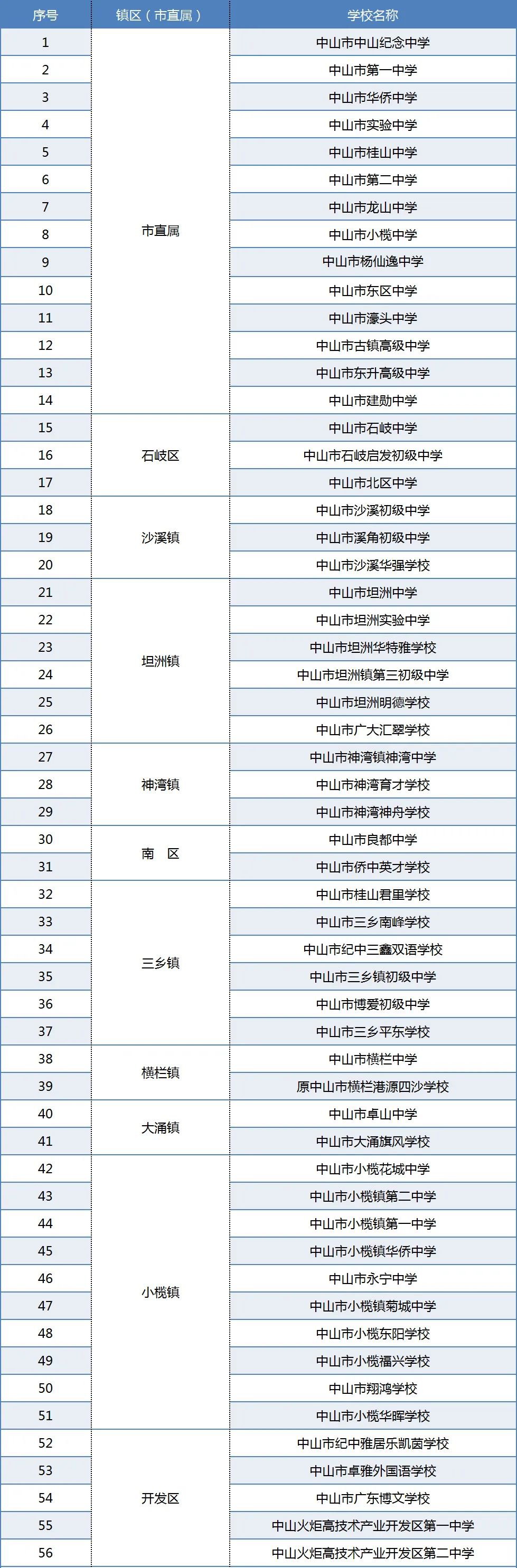 经验收,以下102所学校达到国家、省、市规定的学生返校条件要求。经中山市新冠肺炎疫情防控指挥部同意,该102所学校高三、初三学生,将于2020年4月27日返校上课。现将学校名单公告如下: