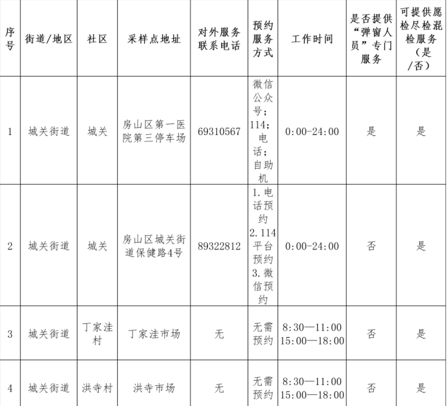 ➤北京房山城关街道常态化核酸检测点【因各采样点会有动态调整变化,具体实际情况为准】