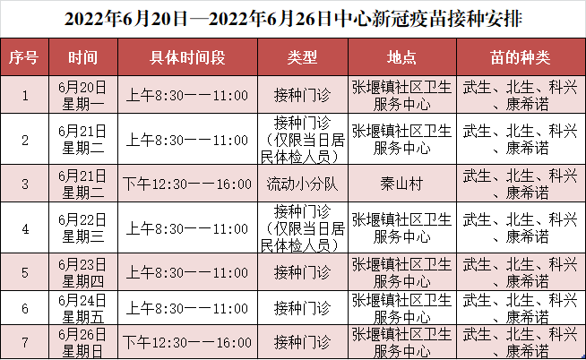 朱泾镇6月20日至6月26日新冠疫苗接种安排