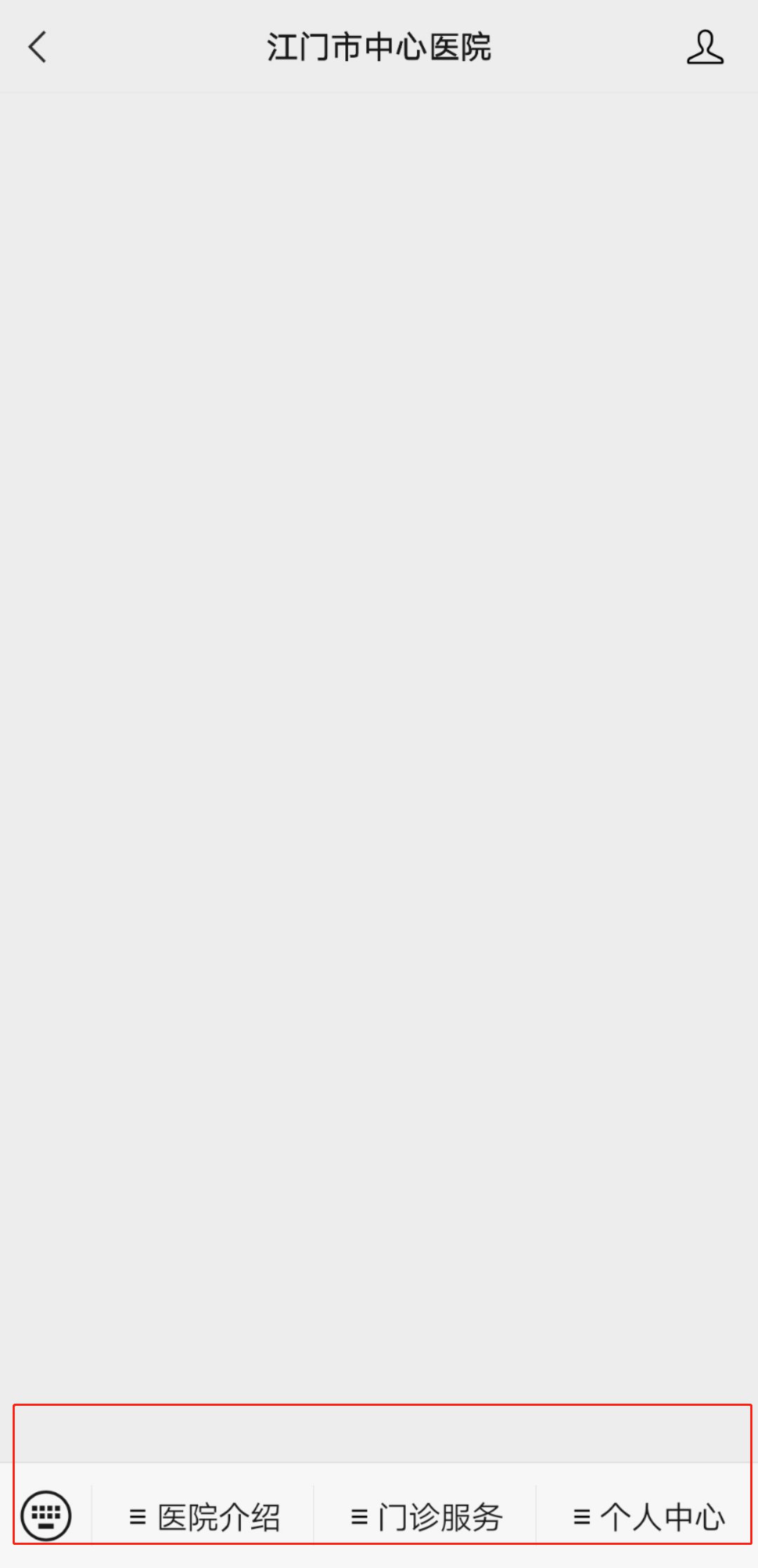 第一步:进入【江门市中心医院】微信平台,查看菜单栏;