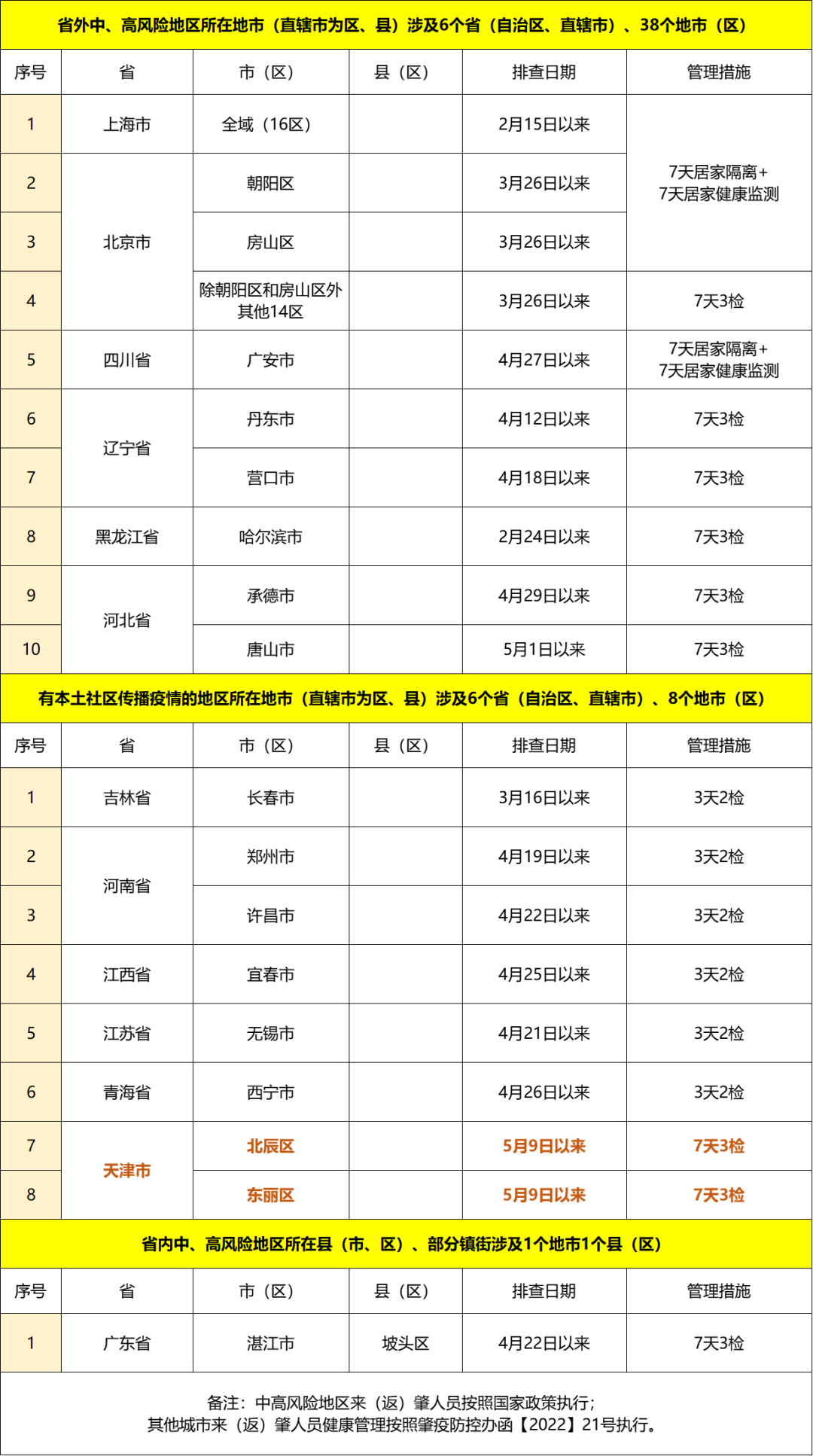 全国疫情风险地区来返肇人员健康管理措施(5月17日)