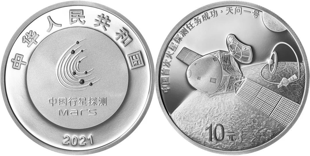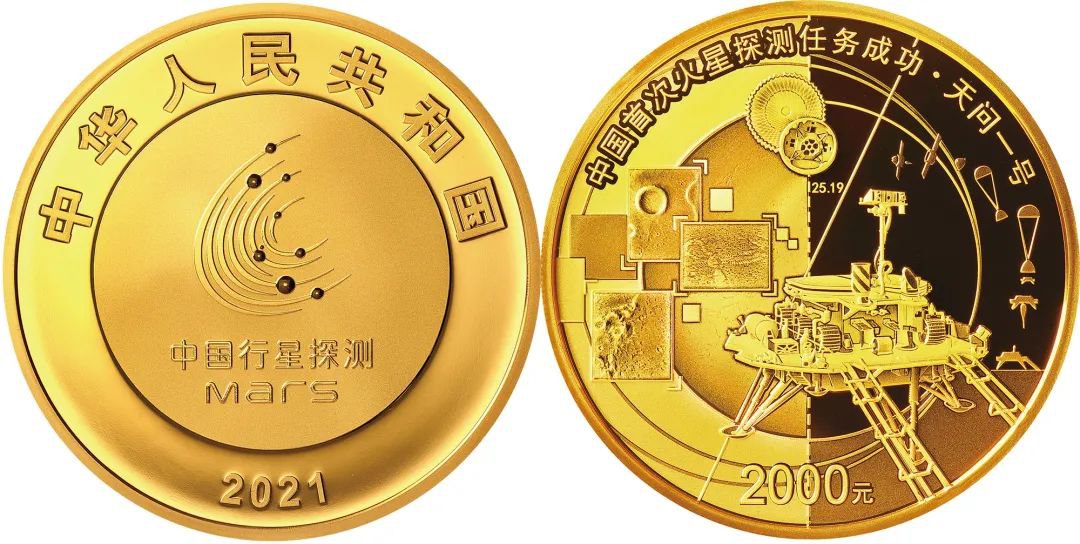 中国人民银行定于2021年8月30日发行中国首次火星探测任务成功金银纪念币一套。该套纪念币共3枚,其中金质纪念币2枚,银质纪念币1枚,均为中华人民共和国法定货币。