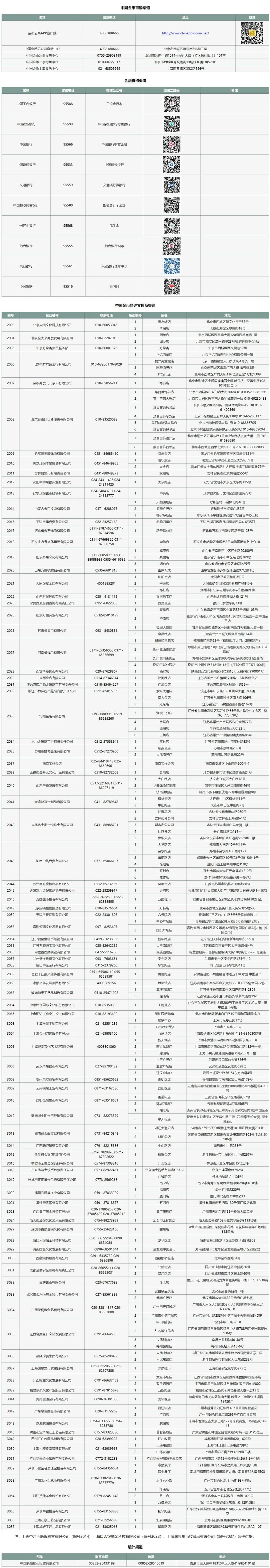 购买渠道(中国金币直销渠道):