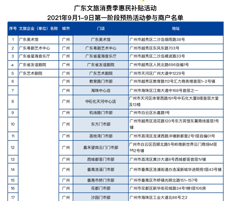 2021广东文旅消费券预热活动参与商户汇总(持续更新)