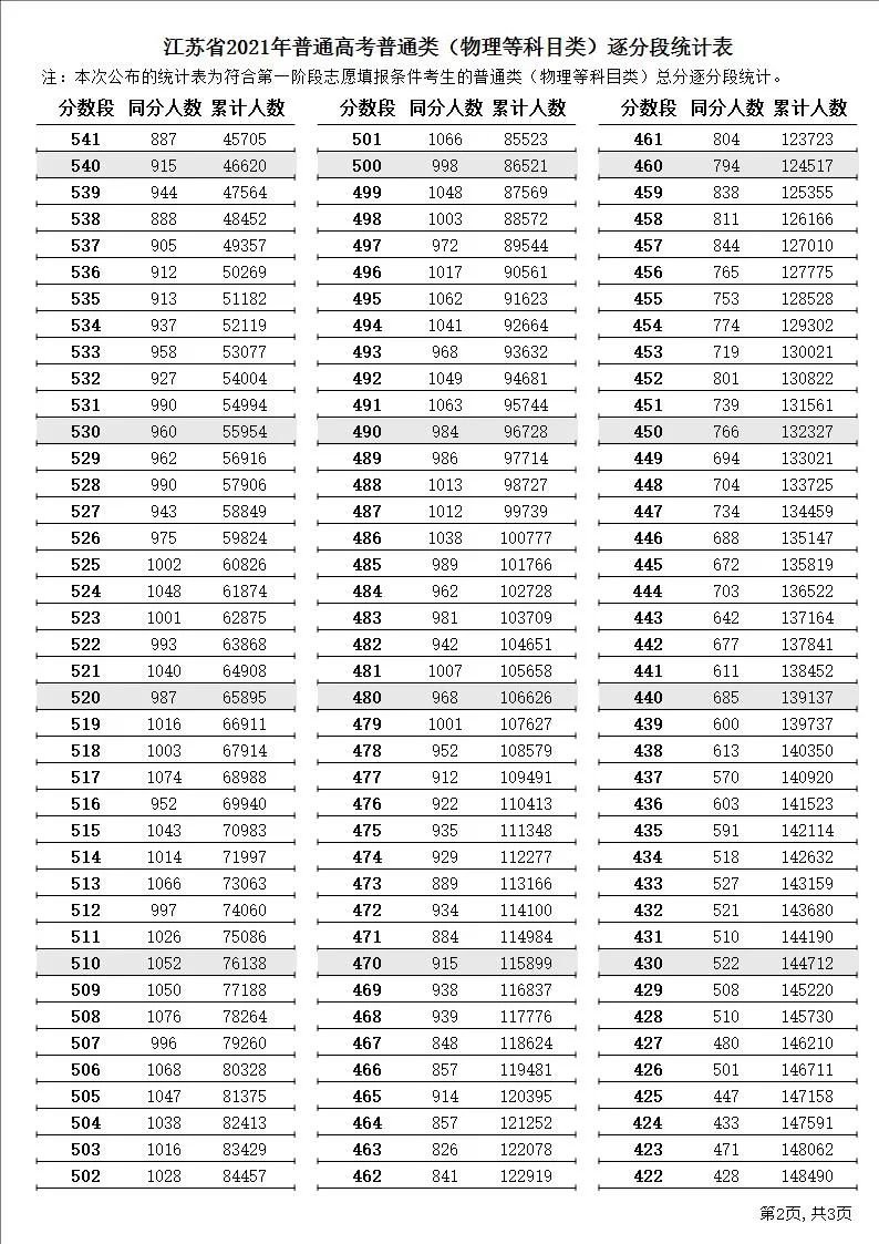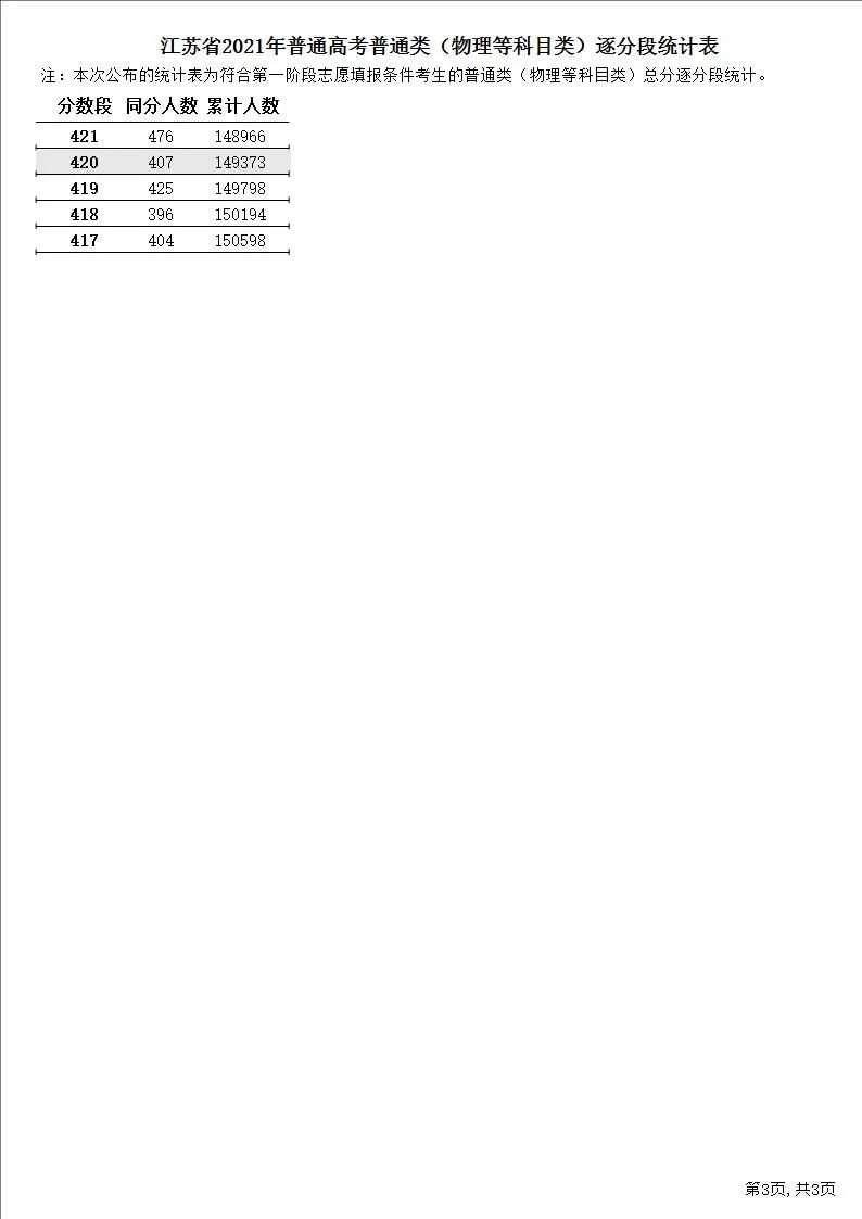 2021年6月24日江苏公布了2021年一分一段表,可参考: