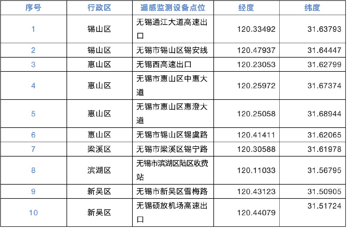无锡市2020年6月在10个路口启用尾气遥感检测设备