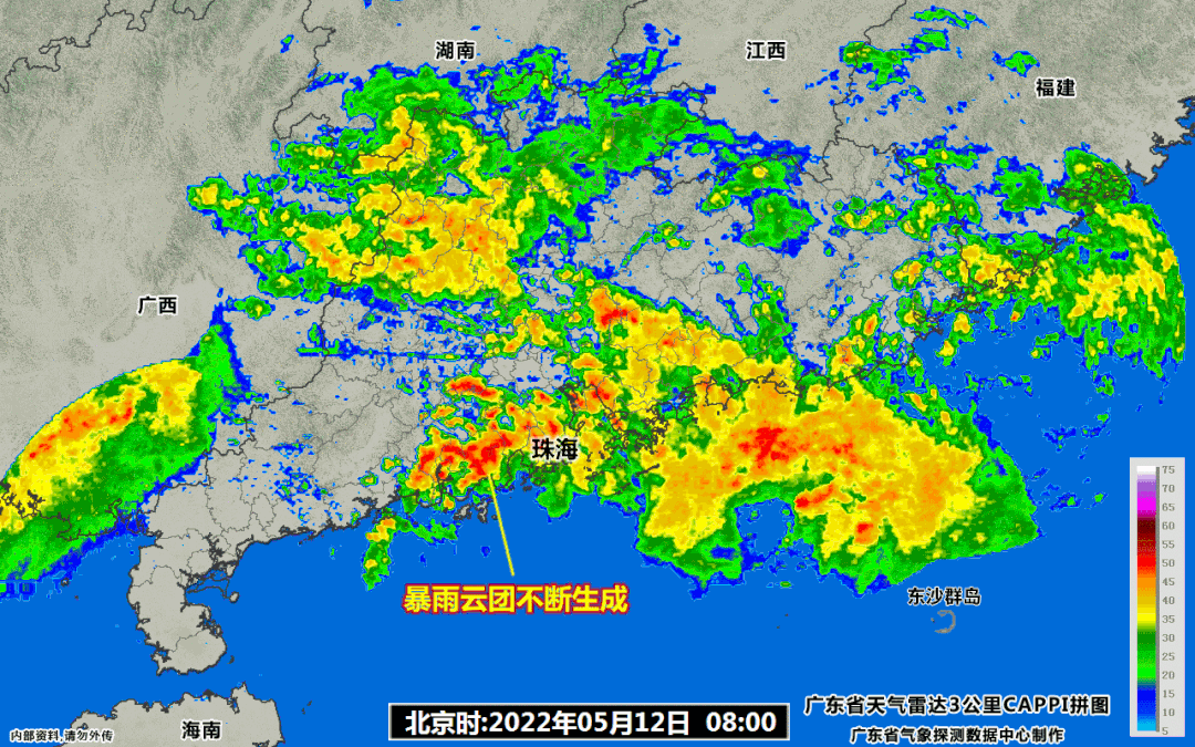 从12日凌晨开始,周边区域降雨云团不断生成,并不断影响珠海地区,直到21时前后才逐渐出海离开,大部分地区连续降雨超过12个小时。