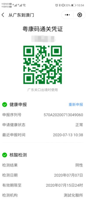 2020澳门入境粤康码通关凭证是什么