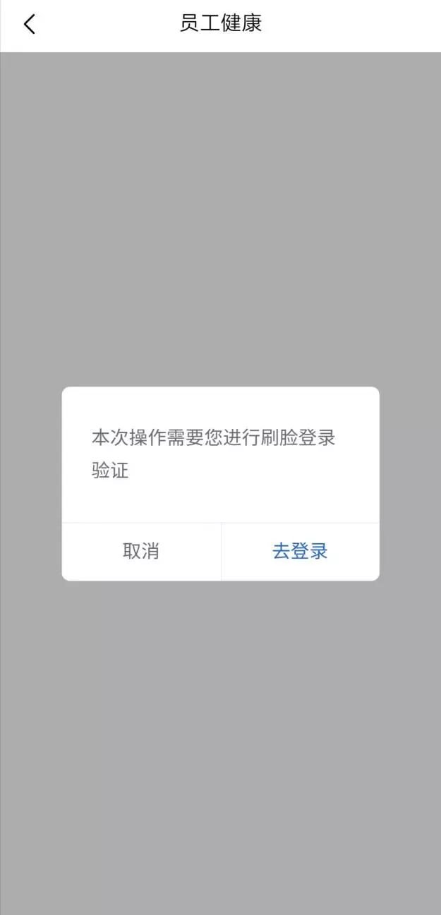 ①法定代表人打开粤商通【员工健康】,系统弹窗提示法定代表人登录验证,点击【去登录】。