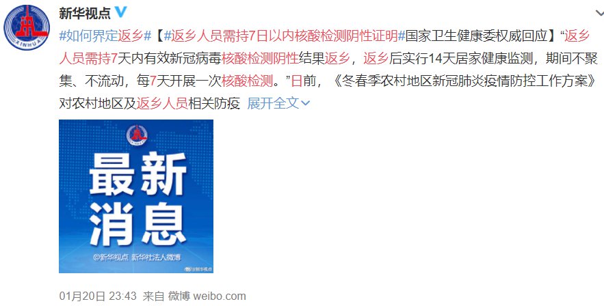 返乡人员需持7日以内核酸检测阴性证明开始时间+截止时间