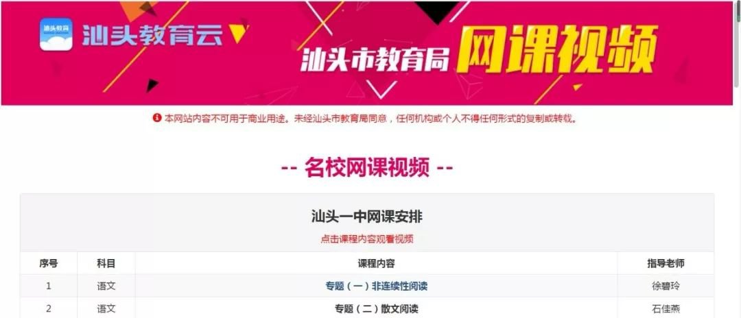 汕头一中视频网课其他学校的学生能看吗