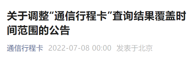 关于调整“通信行程卡”査询结果覆盖时间范围的公告