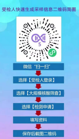 5、 请广大市民积极配合,提前使用粤核酸5录入身份信息生成二维码(之前生成的二维码仍可使用,无需重复生成)。听从所在村(社区)的安排前往采样点,按工作人员和标识指引有序完成核酸采样。老人、孩子可由家人代为登记。