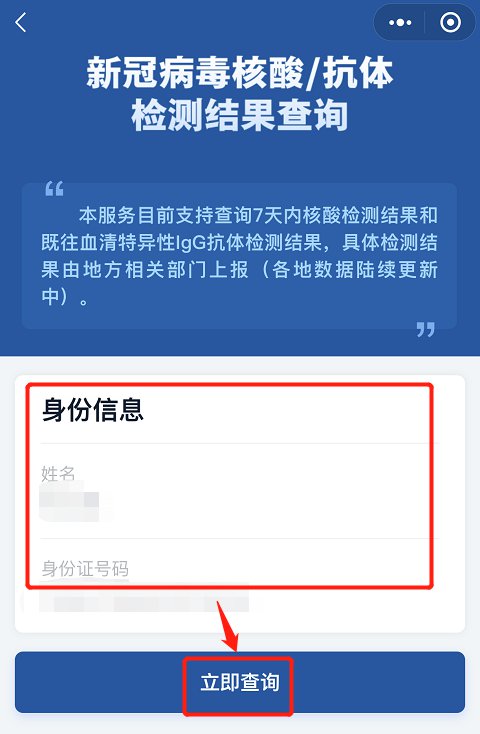 3、填写个人信息绑定注册,点击立即查询即可看到自己电子报告证明;(提示:因核酸检测由各地方相关部门上报会存在延时导致数据更新慢的问题,可多查几次。)