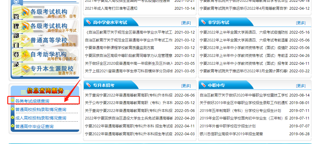 查询入口:宁夏教育考试院查询入口