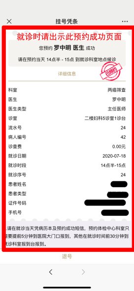 第七步:查看预约以上信息是否正确,再点击确认,就诊时出示预约成功页面;