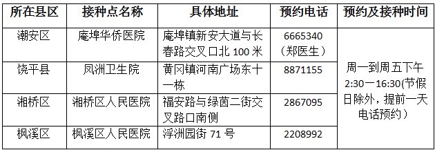 潮州市出国新冠疫苗预约接种门诊名单