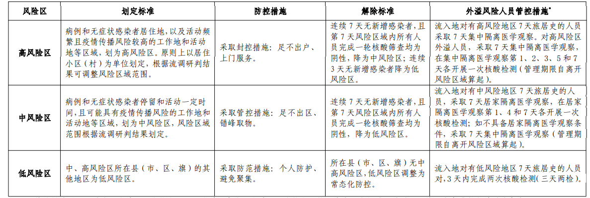 注:*管控措施适用于跨省(自治区、直辖市)人员流动,各省(自治区、直辖市)辖区内中、高风险区外溢人员管理由各地制定并对外发布