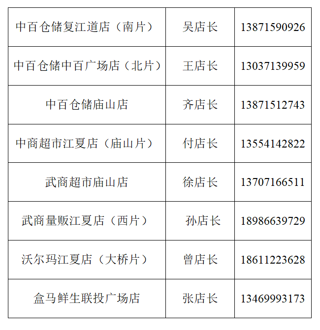 2022武汉江夏区疫情保供商超营业时间+门店