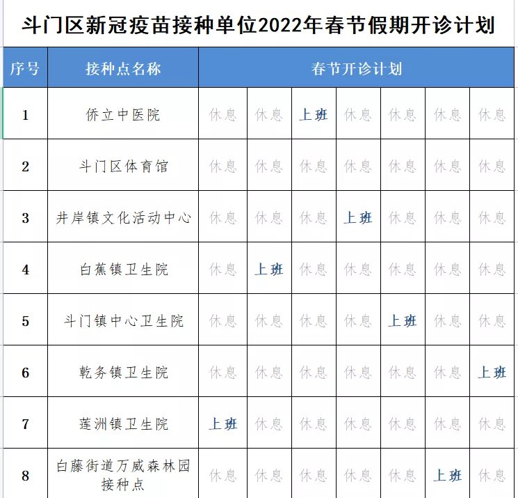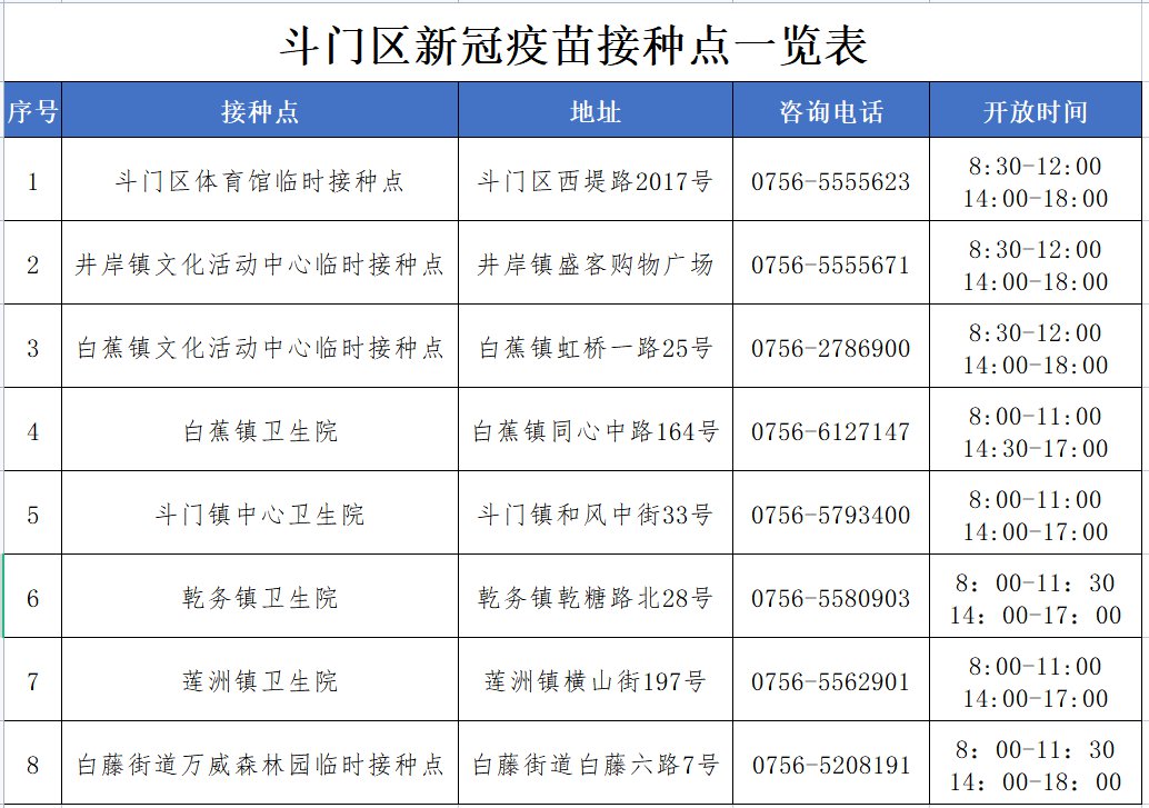 2022年1月30日起珠海斗门区新冠疫苗接种点恢复服务