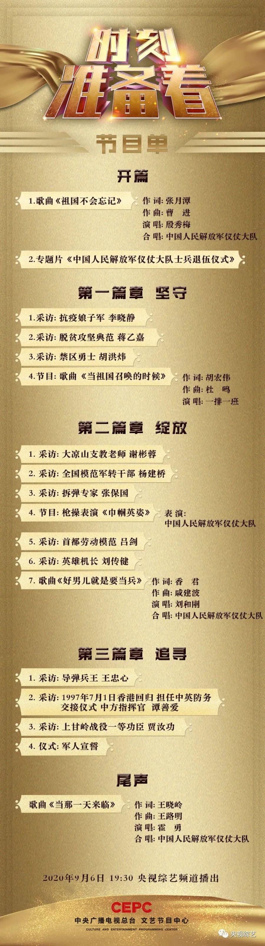 2020央视节目时刻准备着嘉宾阵容+节目单