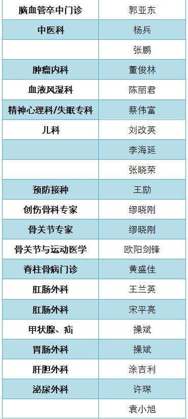 4月5日星期日门诊开展诊疗服务的挂号科室及出诊医师如下: