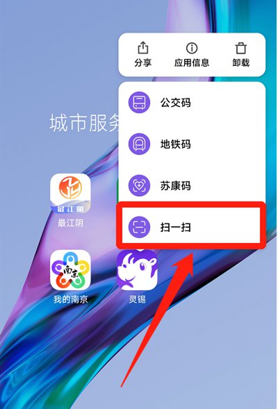 只要你的智能手机有【三维触控】功能,在手机界面长按“灵锡”APP,下拉菜单点击【扫一扫】即可一键触控,直接抵达“灵锡”APP—【扫一扫】界面。使用【扫一扫】扫描各场所“门铃码”,抵达【苏康码】“多码联查”界面!