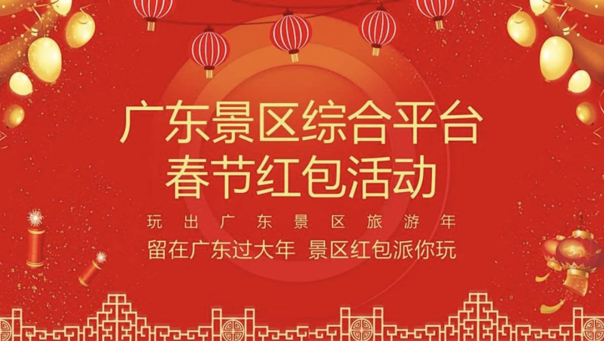 由广东省景区行业协会联合全省各大景区举办的“留在广东过大年景区红包派你玩”活动一切准备就绪啦!50000张!价值400万的景区免费门票红包等你来抢!微信公众号“智游广东”平台除夕晚8点,准点为你派出20218封景区门票红包!寓意2021年国富民丰、吉祥如意!除夕晚未能成功抢到红包的小伙伴们,初一至初八早上10点仍可继续参加活动喔!