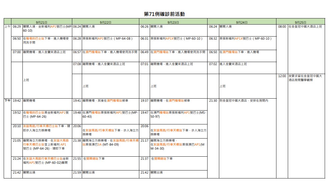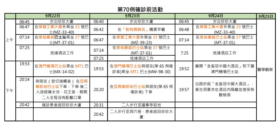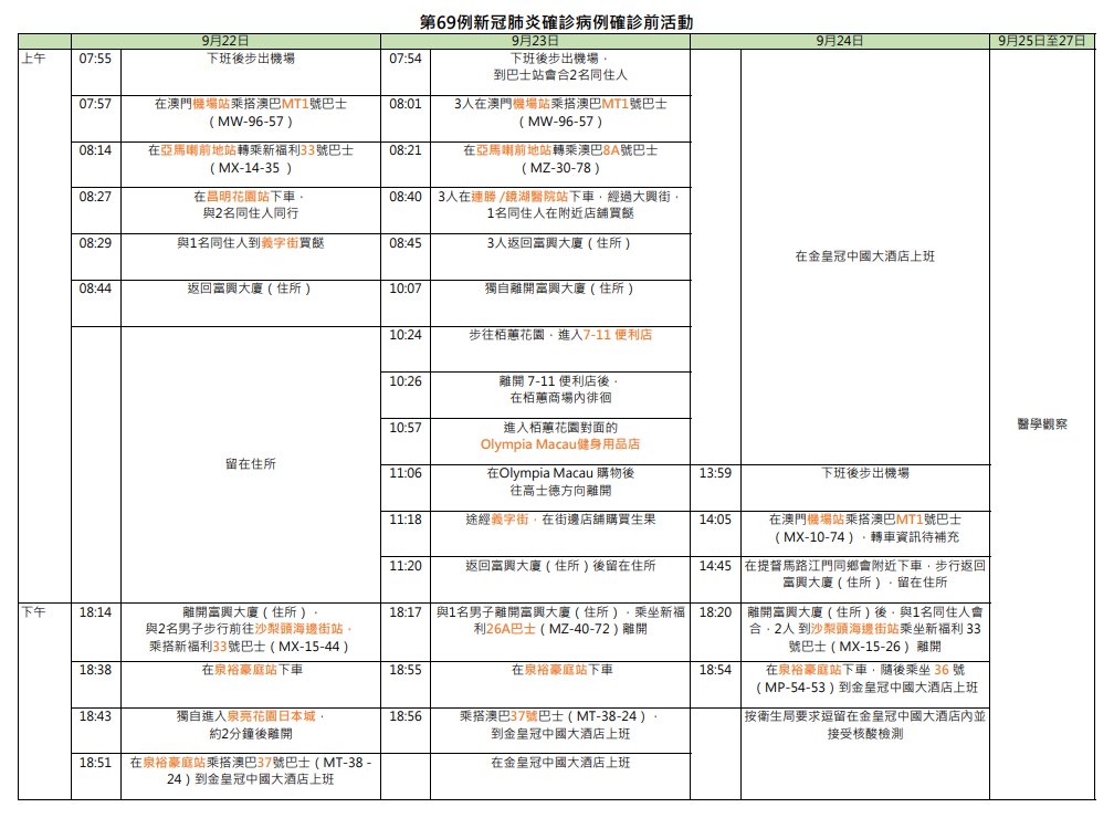 澳门应变协调中心9月29日下午公布第68至第71例确诊病例的活动轨迹,详见下图。