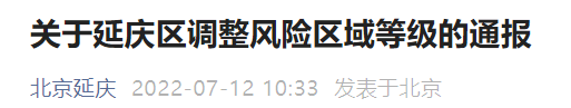 自2022年7月11日23时起,延庆区八达岭镇长城脚下的公社(酒店)由高风险降为中风险区域;