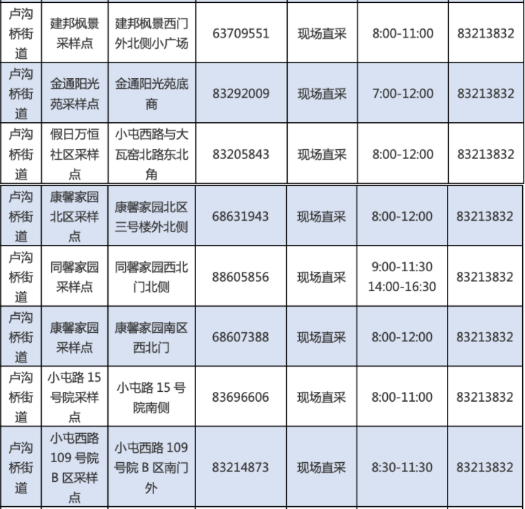 北京丰台卢沟桥街道常态化核酸检测点【因各采样点会有动态调整变化,具体实际情况为准】