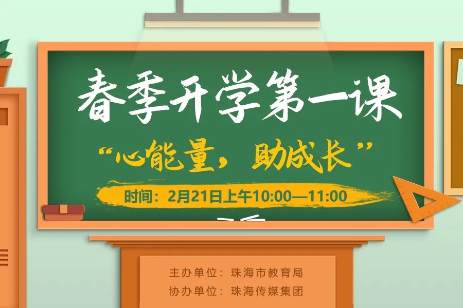 为缓解新学期家长与学生的压力,帮助学生迅速进入学习状态,以适应有规律的学校生活,珠海市教育局联合珠海传媒集团共同举办的“2021年春季开学第一课:心能量,助成长”特别直播节目,将于2月21日上午10点至11点开讲啦!
