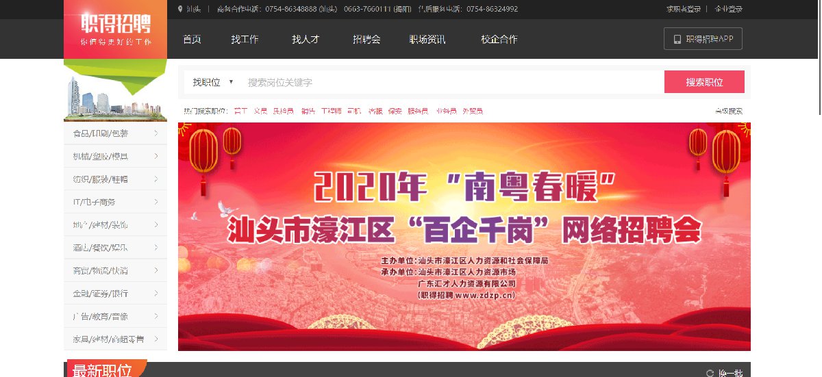 2020年“南粤春暖”汕头市濠江区“百企千岗”网络招聘会
